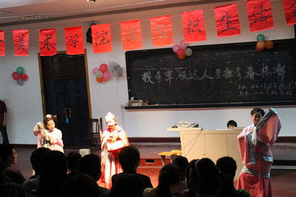 生活会在主持人的“你知道什么是寻草根达人吗?”中拉开帷幕。随后,各班同学向大家呈现了精彩的节目,同学分别以话剧、PPT反映、歌舞、诗歌朗诵、吉他弹唱、汉服和《草根狂欢》走秀、有奖问答等向大家展示了一个朝气蓬勃、勇于创新、团结和谐、自强自信的班集体。其中《草根狂欢》的走秀节目将生活会推向了高潮。10级4班的同学利用身边的废旧材料和塑料袋,充分发挥自己的想象力,创造出了属于草根达人的时装秀。通过草根们的狂欢,让我们知道:所谓草根达人,就是代表顽强,那是一种“野火烧不尽,春风吹又生”的生命力,广泛遍布每一个角落。在整个活动中,大家积极参与,踊跃表现,形式丰富多彩、内容新颖独特。最后,杨老师和刘老师以及校团委组织部副部长成斌都对本次团组织生活会做了总结,在赞扬精彩节目的同时,希望同学们以饱满的热情迎接建团九十周年。