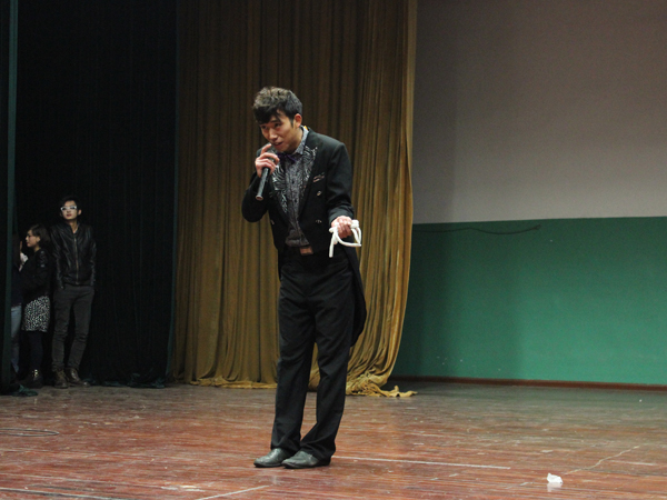 在悠扬的歌声中,由13级6班美丽的姑娘们带来的舞蹈《卓玛》拉开了观摩会的帷幕。本次晚会节目内容丰富,形式多样新颖,慷慨激昂的朗诵令人心潮澎湃,幽默滑稽的小品使人捧腹大笑,风铃般悦耳的歌曲串烧让人耳目一新,缤纷妖娆的舞蹈赢得掌声连连。特别是奇幻神秘的魔术表演更是吊足了观众的胃口,将晚会一次次地推向高潮,在表演者双手灵动的操作下,道具被随心所欲地操纵着,观众一阵阵的惊叹声表达了对他们精湛技艺的肯定。紧接着激动人心的抽奖互动环节<把现场每一个人都拉进了活动中,大家情绪高涨,积极配合,气氛十分热烈。