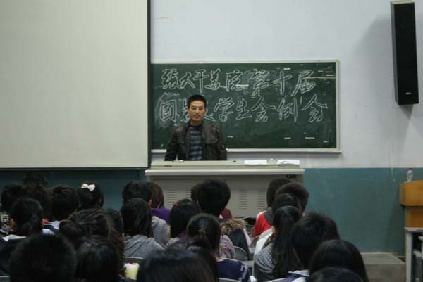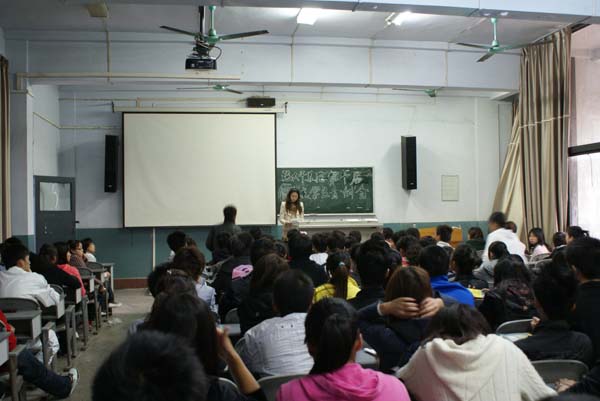 首先陈慧老师讲话,她对10级新干事的加入表示祝贺和欢迎,希望新干事们把握机会积极的、踏踏实实的工作,她指出员工会是一个历练人的好地方,员工会的的工作经验对以后的工作是非常有帮助的,并希望同学们能处理好学习和工作之间的关系,处理好同学之间的关系,更好的为同学服务。