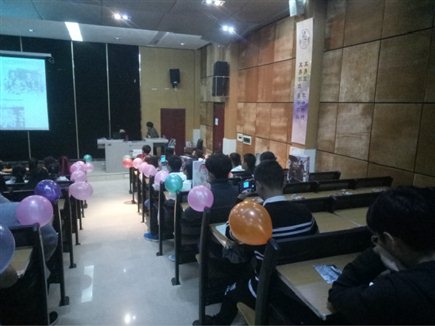 大会召开前,社团干事、成员对会场进行了装饰,设置了签到处,并为签到的新社员精心准备了小礼品。为保证成立大会顺利进行,我社还安排了彩排。