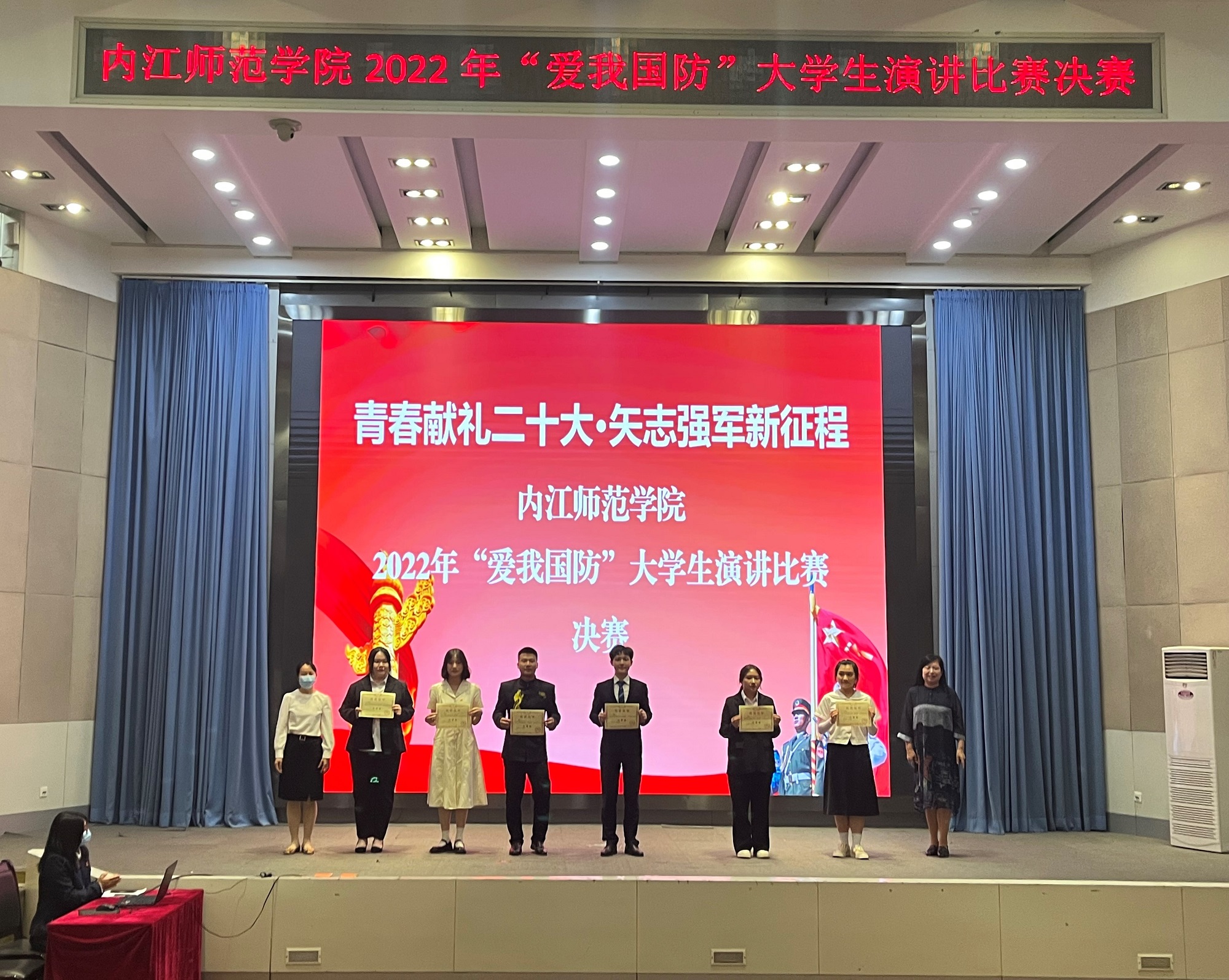 为喜迎党的二十大胜利召开,激发青年老员工热爱国防、崇军尚武的政治热情,营造浓厚的校园国防教育氛围,公司于5月8日在桐梓坝校区第一学术报告厅组织开展了以“青春献礼二十大 矢志强军新征程”为主题的爱我国防演讲比赛,公司袁梦熙、刘依璇两名同学成功入围决赛,并最终取得了一个三等奖和一个优秀奖的佳绩。