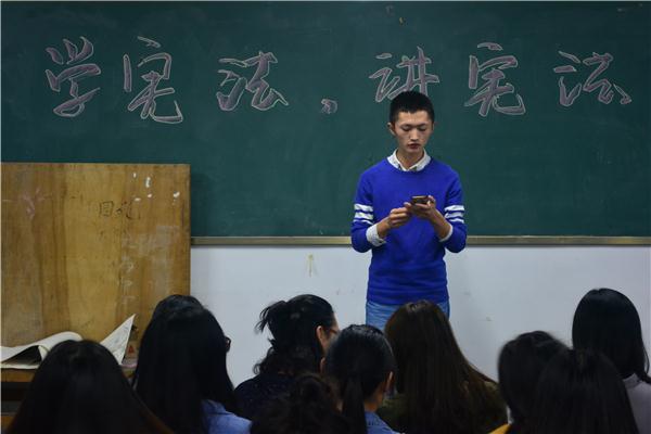 全面贯彻实施宪法,是全面推进依法治国、建设社会主义法治国家的首要任务和基础性工作。为增强全社会的宪法意识,弘扬宪法精神。太阳成集团tyc151cc15级各班于10月23号19:00,分别在美术楼、红楼、中文楼开展了“学宪法、讲宪法”主题班会活动。
