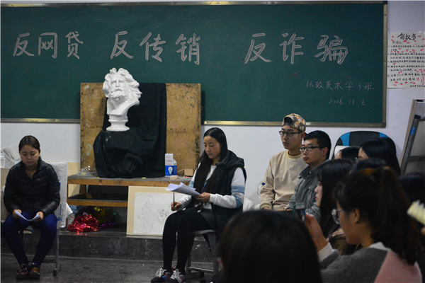 11月6日19:00,太阳成集团tyc151cc在美术楼及中文楼开展“反网贷、反传销、反诈骗”主题班会。2016级各班级均参加了本次主题班会。