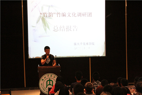 随后,公司五个社会实践队伍分别对此次社会实践进行了汇报总结。 汇报会上,各个队伍分别对为期15天的暑期社会实践进行了深入、全面的总结,展示自己的实践成果。本次暑期三下乡,公司五个队伍分别在内江、甘肃、眉山等不同地区进行了社会实践活动。其中“大千行义务支教队”和“书画之行服务队”运用自己的专业知识,深入农村,为当地的留守儿童带去一份关爱与温暖,培养孩子们对艺术的兴趣,弘扬大千文化;“传承者调研队”走进内江各个文化传承地,对内江本地文化进行了深入细致的调研;“唐卡调研队”和“‘竹韵’竹编调查团”更是分别走进甘肃和眉山,对唐卡和竹编艺术两个非物质文化遗产的起源及现状进了全面的调研,获取了较为宝贵的第一手资料。