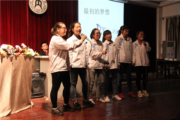 观摩会在全体起立共唱《共青团团歌》中拉开帷幕,随后周红丽同学给大家带来了慷概激昂的诗歌朗诵,她向大家表达梦想是人的翅膀,有了它,人才能飞翔;梦想是最温暖的光芒,即使最黑暗的时候,它也能把前方的路照亮;就是因为有了梦想,人类才走向文明,也正是因为有了梦想,社会才会飞速发展。紧接着,由15级10班带来的歌曲演唱《最初的梦想》,展现了她们对伟大中国梦的期盼,更表达了同学们对实现中国梦的信心与毅力。在互动环节中,同学们畅谈梦想。最后由杨喆带来的Beat Box更将现场气氛再一次推向高潮。