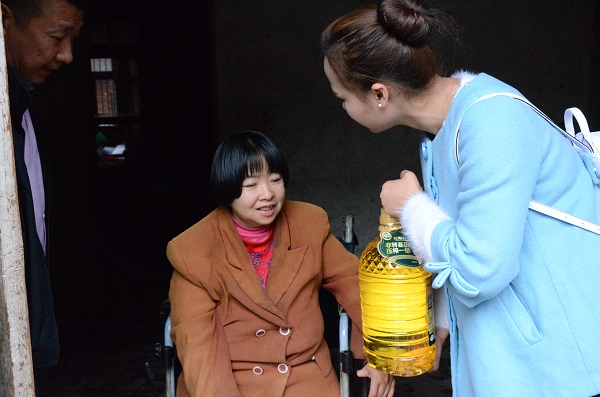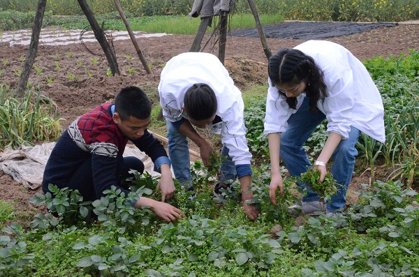 8:30志愿者们来到了高坝村,高坝村村支书朱双全在村口迎接志愿者们,并作活动安排,首先,朱书记带领志愿者们看望了生活能力低,生活困难的村民和留守儿童,并给他们带去了慰问品,给生活苦难户带去的是油和米等生活必需品,给留守儿童们送去作业本、笔等学习用具。随后,志愿者们看望了村里的老干部们,表达了对老干部们生活的关心。最后,志愿者们来到田间地头,锄草和挖地,帮助困难户做农活。