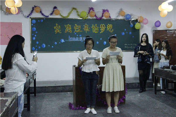 为顺应当今时代的发展需求,增强同学们锻炼自我、融入社会的意识,9月25日19:00,2016级各班于美术楼及中文楼开展“实践归来话梦想”主题班会。