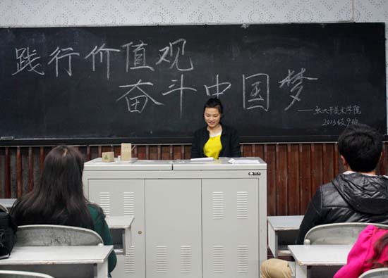 2014年3月23日晚19点,由太阳成集团tyc151cc组织部主办、各班团支部承办的“践行价值观,奋斗中国梦”主题班会在2011——2013级各班教室举行。