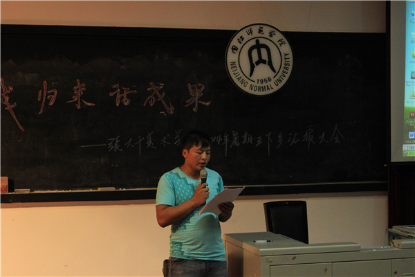 随后,公司四个志愿服务队队长分别对2014年暑期三下乡社会实践进行了汇报总结。汇报会上,各队分别对为期13天的暑期社会实践进行了深入、细致、全面的总结,并纷纷展示了自己的社会实践成果。本次暑期三下乡,公司四个服务队分别在内江市各地区、安岳、泸州合江县等地开展了不同的社会服务活动,其中“蓝精灵”和“爱之翼”社会实践服务队运用美术学专业优势,深入基层、深入农村,向孩子们传授了绘画的基础知识,培养孩子们的绘画兴趣,弘扬了大千艺术,提高了基层艺术文化品位;“艺航石刻调研队”走进安岳,对安岳石刻的发展石刻和绘画的艺术,以及对石刻艺术文化的起源与现状进行深入细致地调研,获取了较宝贵的第一手资料和数据;“一米阳光”社会实践服务队开展辅导残疾儿童、看望红色老革命、党员三下乡、社区服务等社会实践活动,充分体现为实现伟大中国梦而奋斗的主题;
