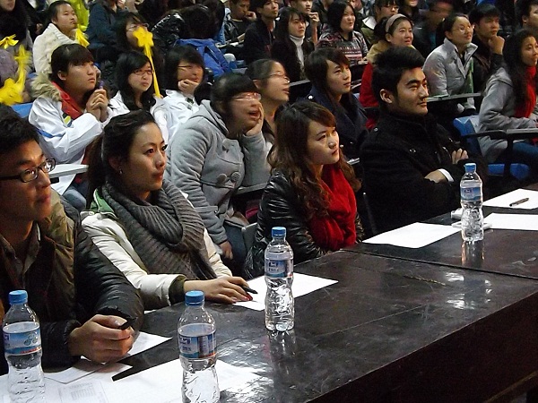 在竞赛现场上,9个代表队都表现得非常出色,竞争十分激烈,比分你追我赶,整个竞赛现场气氛紧张热烈。复活环节中,有的模仿周星驰的怪笑;有的随着音乐表演武术动作,音乐不停,动作不能停;有的一分半钟吹破六个气球……这些出人意料的题目不仅使选手有了复活的机会,他们搞笑的表演也将整场活动的气氛推向了高潮。其间的互动环节把每一个同学都拉进了活动中,大家争先恐后地进行有奖竞答,情绪高涨,积极配合,现场气氛非常热烈!