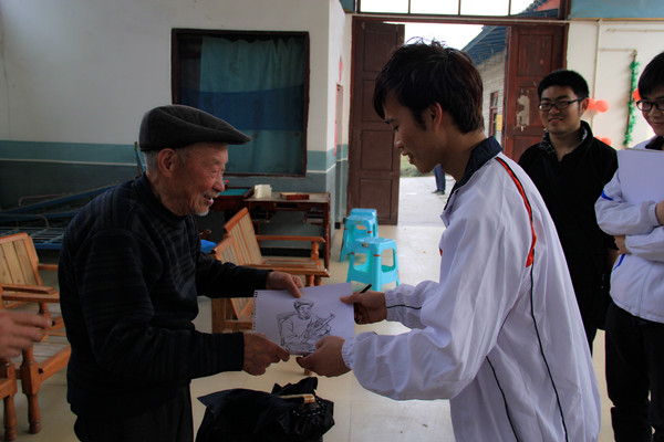 下午两点,公司服务队来到了大自然敬老院,敬老院李经理和老人们对服务队一行表示热烈欢迎。李经理把敬老院的情况向大家作了简单介绍后,志愿者们很快便投入到了志愿服务中去,打扫房间、铺床叠被、捶背按摩,陪老人聊天,部分志愿者结合自身的专业优势为老人画速写。院里欢笑声不断,气氛十分融洽。公司志愿者将精心准备好的小礼物送给老人们,并献上衷心的祝福,希望老人们能够身体健康,生活愉快。