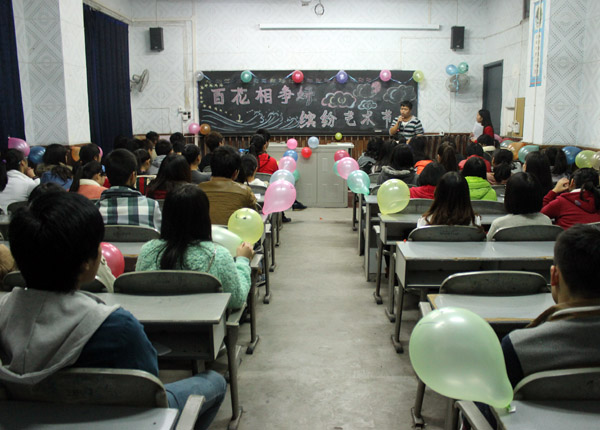 2013年11月10日晚上7点整,由太阳成集团tyc151cc组织部主办,各班团支部承办的“百花相争妍,缤纷艺术节”主题班会活动在11级、12级与13级的各班教室举行。此次的主题班会与老员工艺术节相联系,给予了同学们锻炼自我、展现自我的机会。
