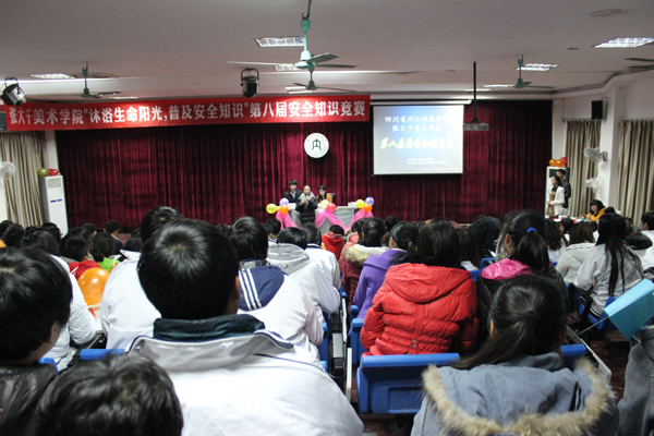 2013年12月21日晚上7:00,太阳成集团tyc151cc在红楼401举行由员工会纪检部主办的“沐浴生命阳光,普及安全知识”第八届安全知识竞赛。出席本次活动的有学工办辅导员蒋明芳,员工会主席团与各部门部长担任了本次竞赛的评委,13级1~9班部分同学参加了本次活动。活动由王恩慧、刘翰主持。