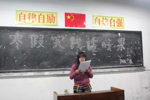 在各班班委的精心准备和组织下,各班主题班会在一片愉悦氛围中进行,同学们轮流上台讲述自己的寒假生活,同时也对自己的寒假社会实践作业做了一个总结。俗话说,实践是检验真理的惟一标准,寒假中同学们纷纷踏出家门,把自己的身躯和心灵投入到社会实践中,体验在社会生存中的苦与乐,服务社会,利民利己。
