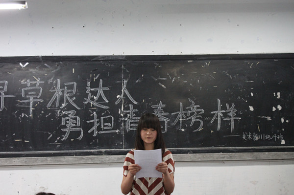 为进一步提高公司员工思想意识,鼓励同学们展现自我、放飞青春, 4月22日晚7:00,2010、2011级各班在本班教室召开了以 “找寻草根达人、勇担青春榜样”为主题的班会。