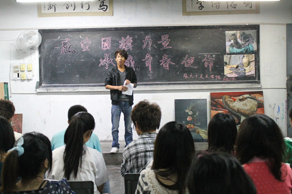 5月13日晚7:00,2009—2011级各班在教室里开展了以“感受党旗力量,承载青春使命”为主题的主题班会。