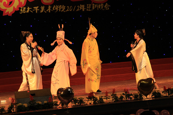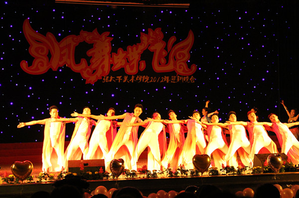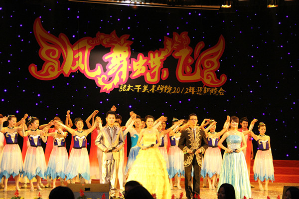 晚上9:00,历时两个小时的晚会在一片热闹、欢快、祥和的气氛中圆满结束。本次迎新晚会,阵容强大,节目形式丰富多彩,有舞蹈、唱歌、话剧等,充分展示了美院学子多才多艺的风采。