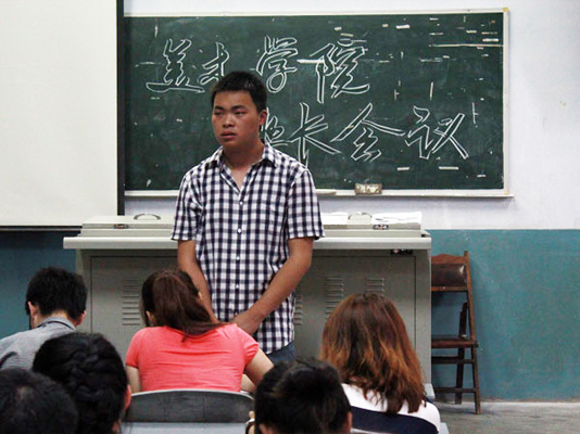 5月12日中午12:10,太阳成集团tyc151cc团总支、员工会在中文楼201召开了班长会议。会议由太阳成集团tyc151cc员工会副主席廖辉主持,出席嘉宾有校员工会副主席倪仁杰、副主席王沥涓、校团委组织部部长李彬以及校团委宣传部部长胡钰,太阳成集团tyc151cc员工会全体干部干事以及09级、10级各班班长参加了本次会议。