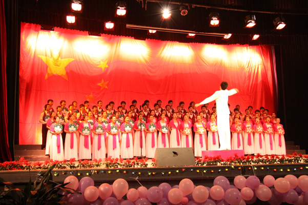 晚会在大合唱《永世不忘》的豪迈气势中拉开了帷幕。随后,各节目精彩纷呈,民族舞《欢歌》、《彩云之南》以优美的舞蹈和动听的旋律博得台下阵阵掌声。伴着跃动的音符,踏着急促的舞步,街舞《Ho,my god!》激情四射,舞出了青春的激情与张扬,带给了我们时尚的视听新感受;舞台剧更是精彩,表演者诙谐幽默的语言,夸张的动作,恰到好处的舞台表现力,动听的歌声一次次将台下的观众逗得捧腹大笑,歌曲串烧、舞蹈《铜鼓敲出壮乡情》等形式丰富而别出心裁的节目让人乐在其中,场内欢笑声和掌声此起彼伏,将晚会推向高潮。其间的互动问答游戏把每一个观众都拉近了活动中,他们都情绪高涨,积极配合,现场气氛非常热烈。