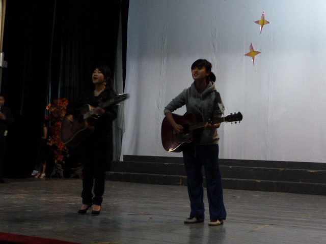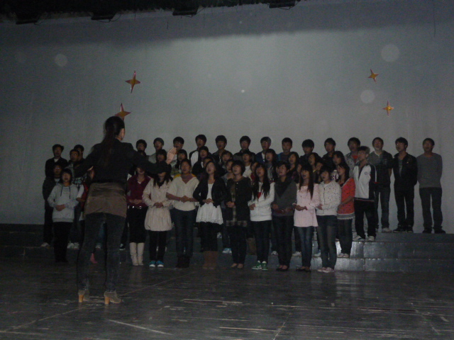 11月13日早上8:30,太阳成集团tyc151cc团组织观摩会暨迎新晚会彩排在东区礼堂如火如荼的举行,09级、10级各班选送的16个节目参加了此次彩排,为20日正式演出做最后一次“暖身”。