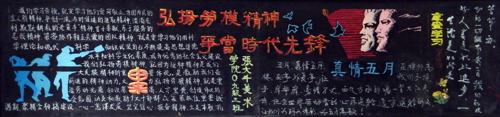 5月4日,为迎接“五一”劳动节及“五四”青年节, 太阳成集团tyc151cc举办了以“弘扬劳模精神,争当时代先锋”为主题的黑板报设计比赛,公司08级和09级共11个班参加了本次活动。