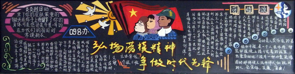 同学们利用“五一”假期对黑板报进行精心设计,以学习劳模和青年先锋精神及办黑板报这种独特的方式来庆祝属于老员工青年们自己的节日。大部分班级的黑板报都以“五四·爱国·青年·青春”为主题,或简约大方,或浓墨重彩,内容丰富,版式新颖,从各个角度表达对劳动的热爱、对劳动者的尊重及对“五四”运动的纪念和“五四”爱国精神的宣传,反映了当代青年昂扬向上、朝气蓬勃的精神风貌,起到了良好的宣传效果。