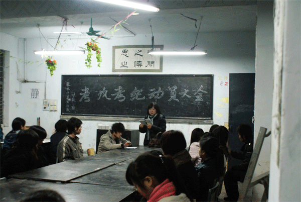 在全院各班的教室里,班主任认真组织学习,同学们针对诚信问题、考试作弊所产生的危害等进行了激烈讨论。全体同学签订了“诚信考试承诺书”。在07级1班召开的“考风考纪动员大会”,会上,班主任彭永馨老师特别指出了严肃考风考纪的重要性。同时,给同学们阐述了学习的意义及考试的目的,重点强调考试作弊的后果及影响,并对同学们提出了几点要求:第一,要求同学们努力学习,做好考前复习,认真对待期末考试,坚决杜绝作弊等违反考场纪律的行为。第二,要求同学们严肃考场纪律,树立优良考风,以充实的文化知识、认真的求知态度,严肃面对即将到来的期末考试。最后,祝愿同学们在期末考试中取得优异成绩。