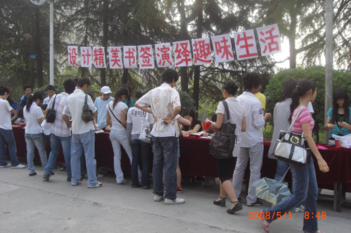 2008年 5 月 1 日,为展现出公司的艺术风采,唤醒更多人对艺术的理解和追求,在校团委、员工处和公司党总支的支持下,美术公司的50名志愿者在四食堂举行了精美书签设计活动。他们用自己勤劳之手,免费为广大朋友设计出一张张精美的书签,描绘出七彩的生活。