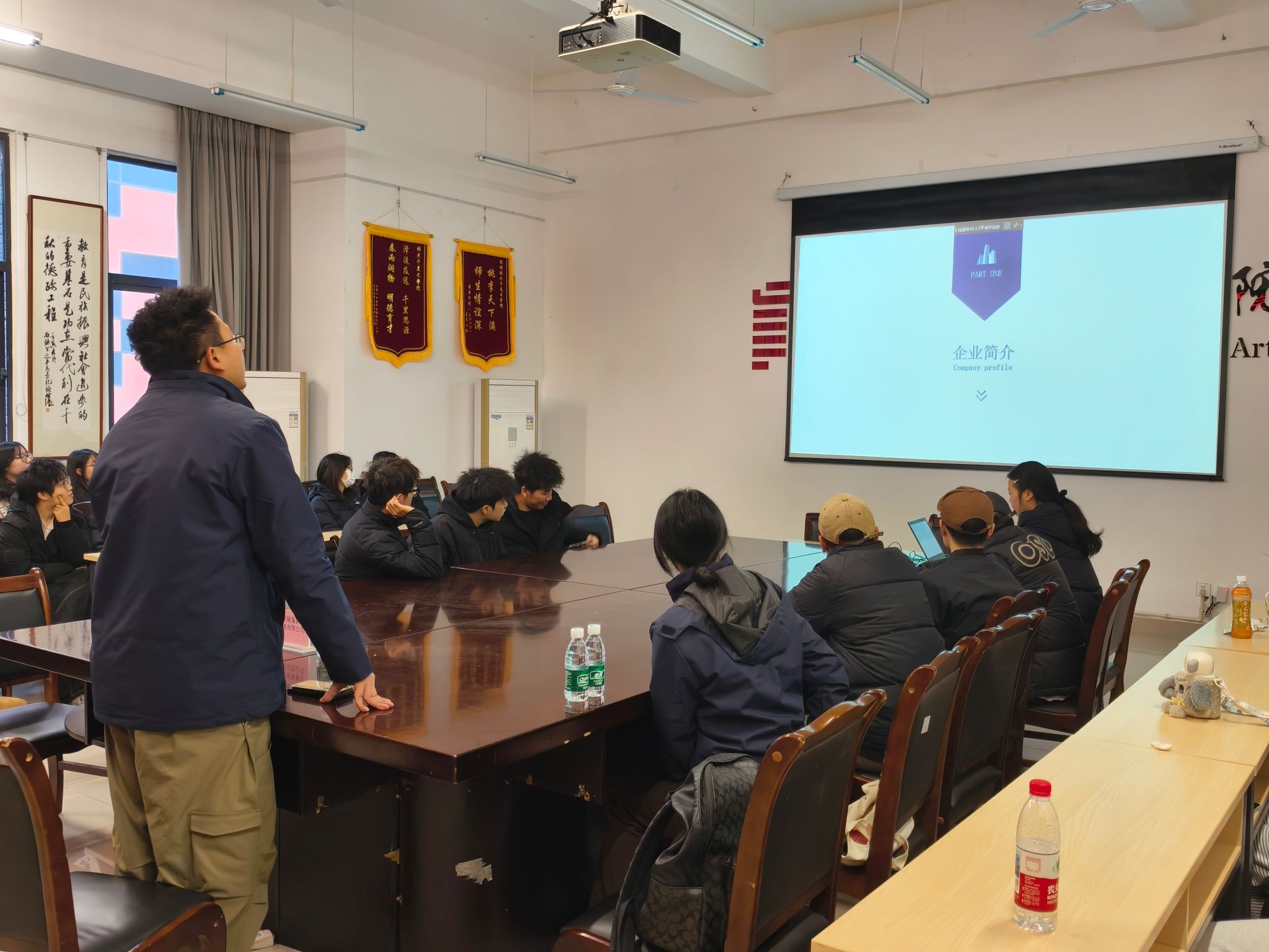 招聘会前,公司通过多途径宣传动员,确保相关专业未就业员工广泛知晓、积极参与。招聘会上,企业负责人系统介绍了公司发展历程、主营业务及行业特色,并重点阐述了企业在品牌视觉、包装设计、环境展示等方面的美术类人才需求。结合美术生的专业特长,负责人就岗位要求与发展路径进行了针对性讲解,帮助员工对接适合自身技能的就业岗位。