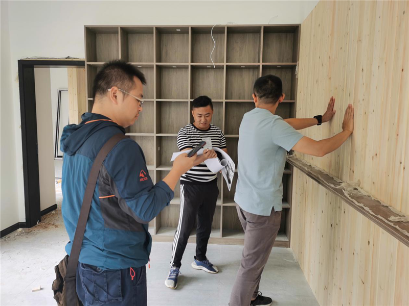 在项目现场,相关单位负责人就项目装修工程的最新情况和存在问题向检查小组作了详细介绍。公司检查小组对项目内部装修细节进行仔细核对,指出了建材及灯具需要根据专业特性进行整改的一些问题。检查结束后,李经理和施工方深入沟通,提出了反馈意见和建议,并强调要加强沟通协调,结合实际情况做好设计方案的调整,加快项目建设进度,确保项目如期完工投入使用。